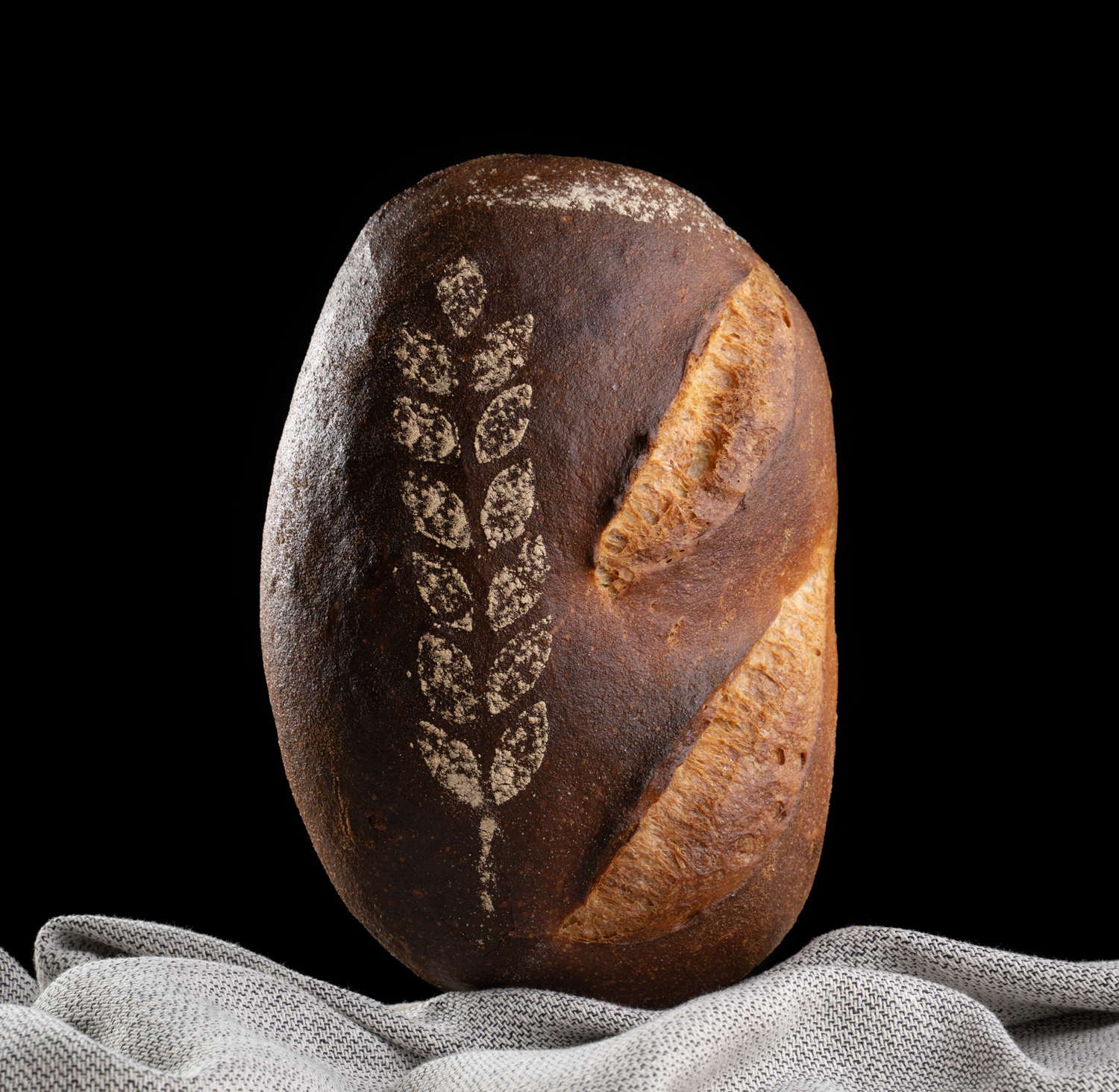 Unser Meisterstück besticht durch das Ährendekor und die gefensterte Kruste, deren Farbvielfalt aus Brauntönen besonders attraktiv aussieht. Hält sehr lange frisch.
